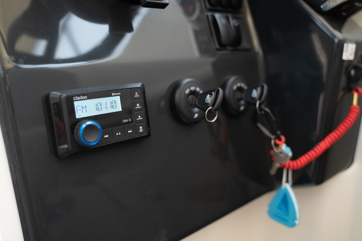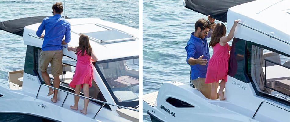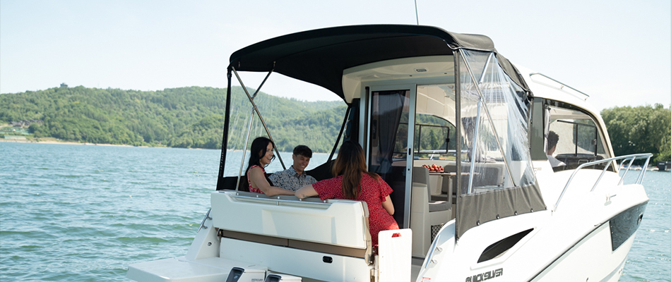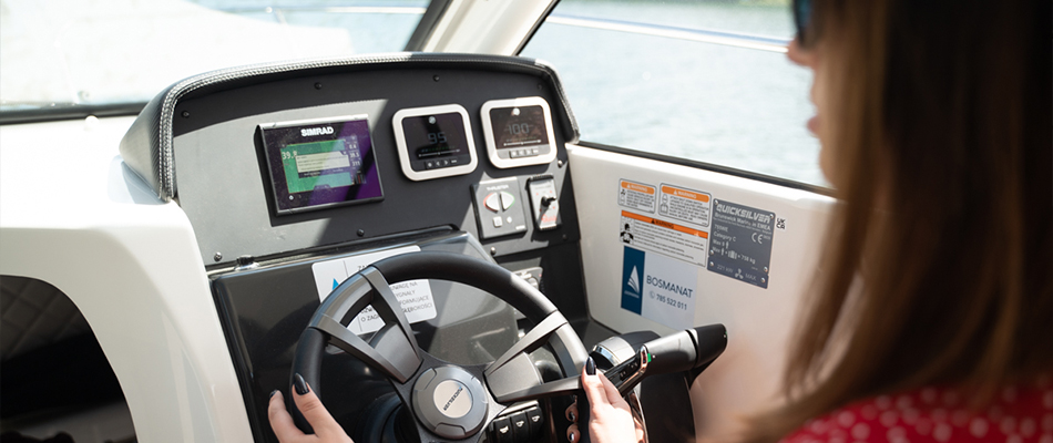 Bezpieczeństwo jest priorytetem. Z kabiny możesz cieszyć się pełnym, panoramicznym widokiem oraz mocą silnika Mercury, który daje Ci pełną kontrolę nad otoczeniem. Starannie rozmieszczone poręcze i szerokie przejście od kokpitu do dziobu umożliwiają bezpieczne poruszanie się po całej łodzi. Wysoka burta oraz antypoślizgowa powierzchnia dodatkowo zapewniają bezpieczeństwo pasażerom w każdym wieku.