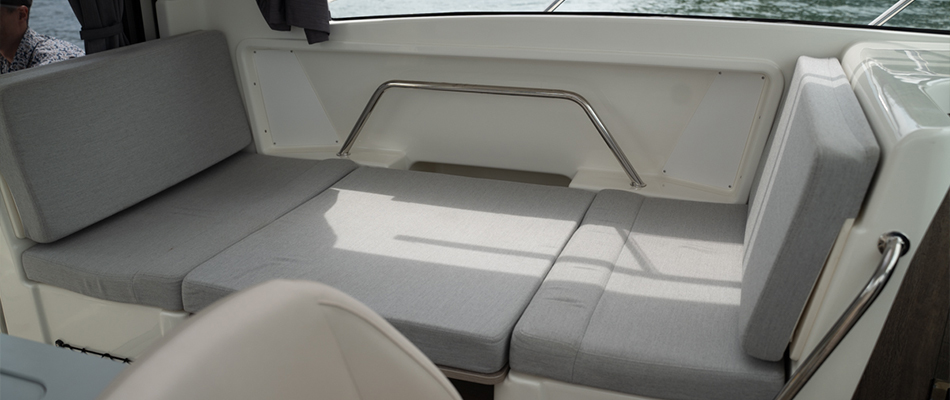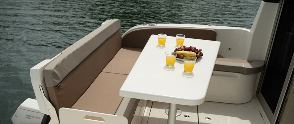 Activ 755 Weekend zamienia życie na wodzie w prawdziwą przygodę. Wszechstronna jadalnia doskonale sprawdza się podczas spotkań towarzyskich i posiłków, a po zakończeniu dnia można ją łatwo przekształcić w dodatkową, trzecią koję. Rufowa kanapa w kokpicie ma trzystopniowe odchylane oparcie, pozwalając każdemu znaleźć idealną pozycję do relaksu. Dodatkowo, kokpit można przekształcić zarówno w jadalnię, jak i w pokład słoneczny, oferując maksymalną funkcjonalność i komfort.