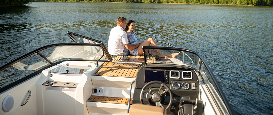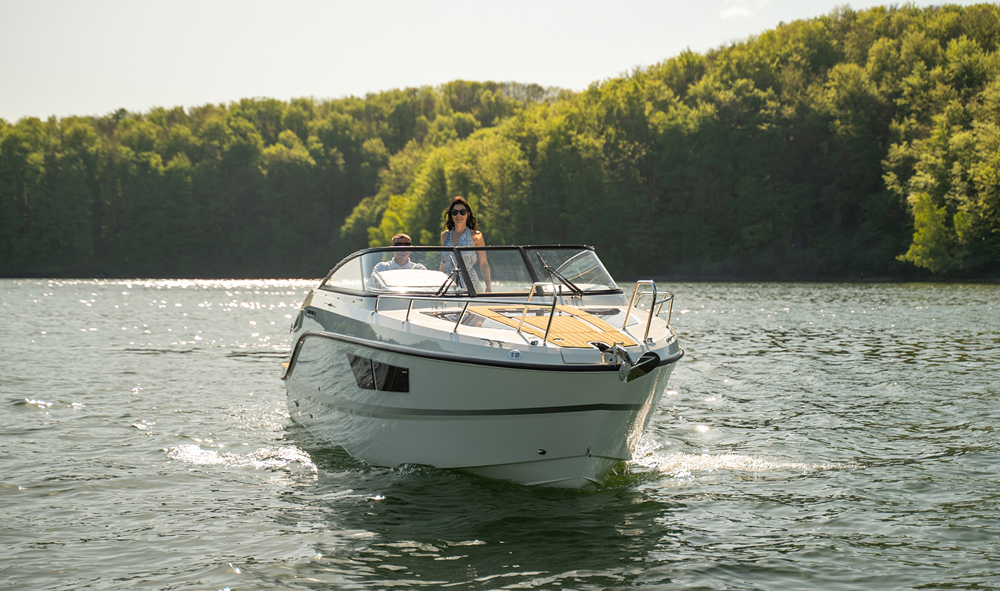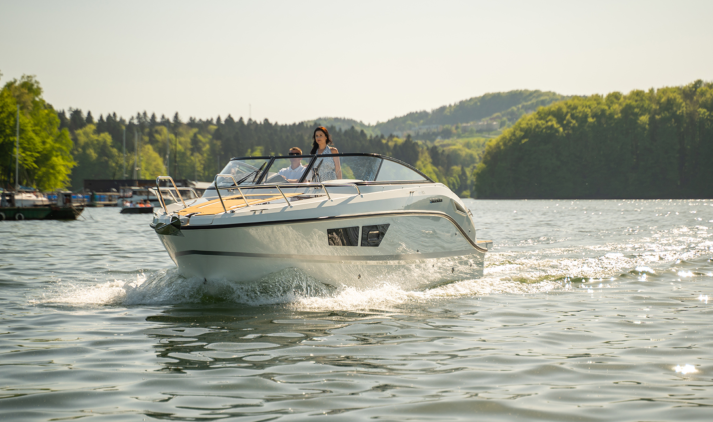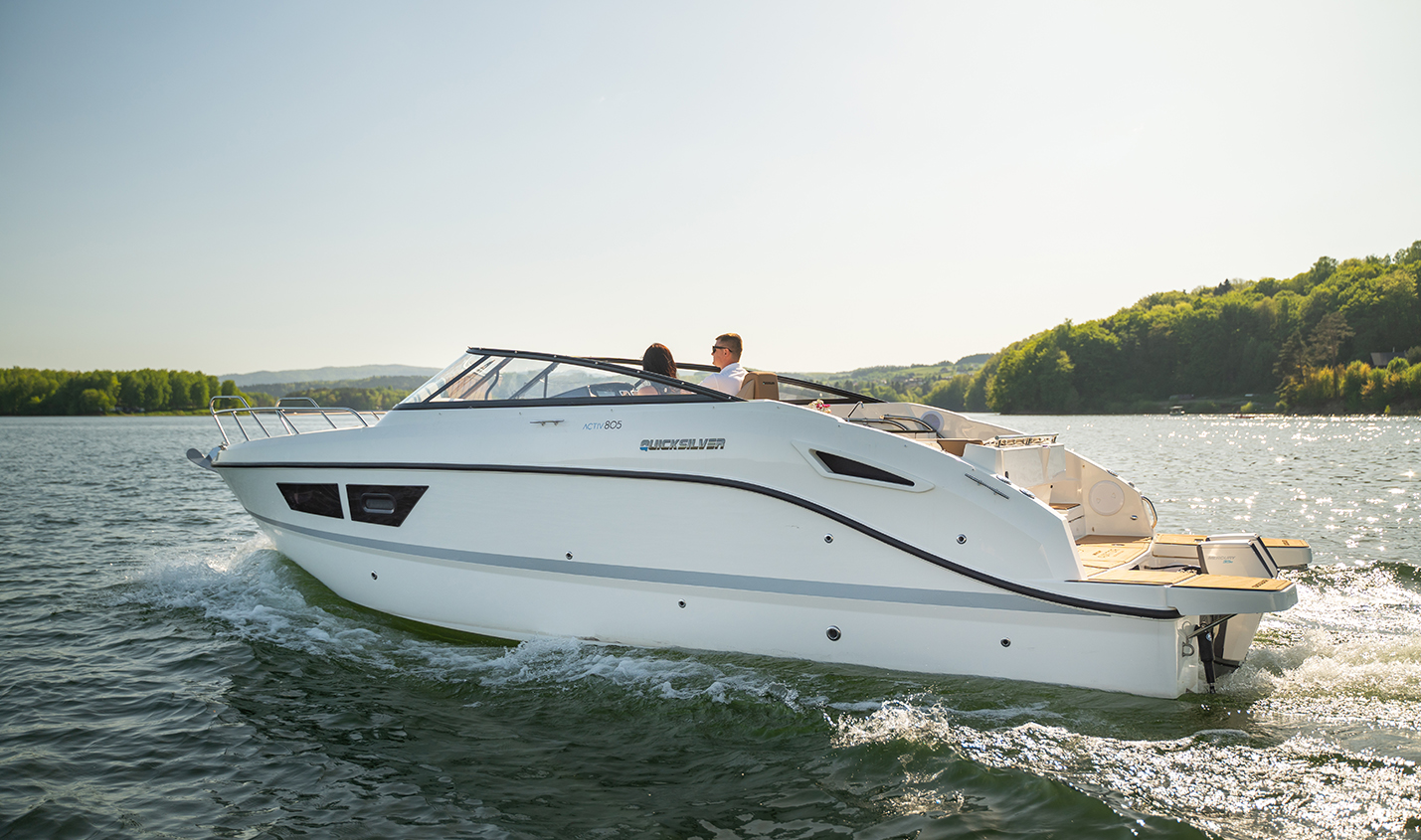 Activ 805 Cruiser to łódź, która zapewnia niezapomniane wrażenia na wodzie dzięki swoim licznym funkcjom. Jej kadłub został zaprojektowany z myślą o bezpiecznym i dynamicznym pływaniu, a z miejsca za konsolą sterowniczą masz doskonałą widoczność i dostępność. To sprawia, że łódź jest bezpieczna przy każdej prędkości i w różnych warunkach pogodowych. Łatwy dostęp do rufy oraz szerokie platformy kąpielowe z solidną drabinką umożliwiają bezproblemowe wejście i wyjście z wody.