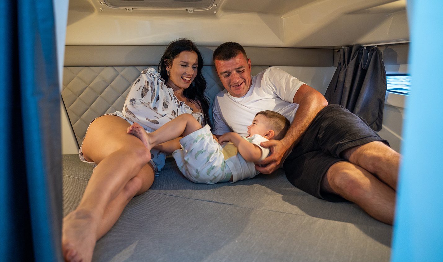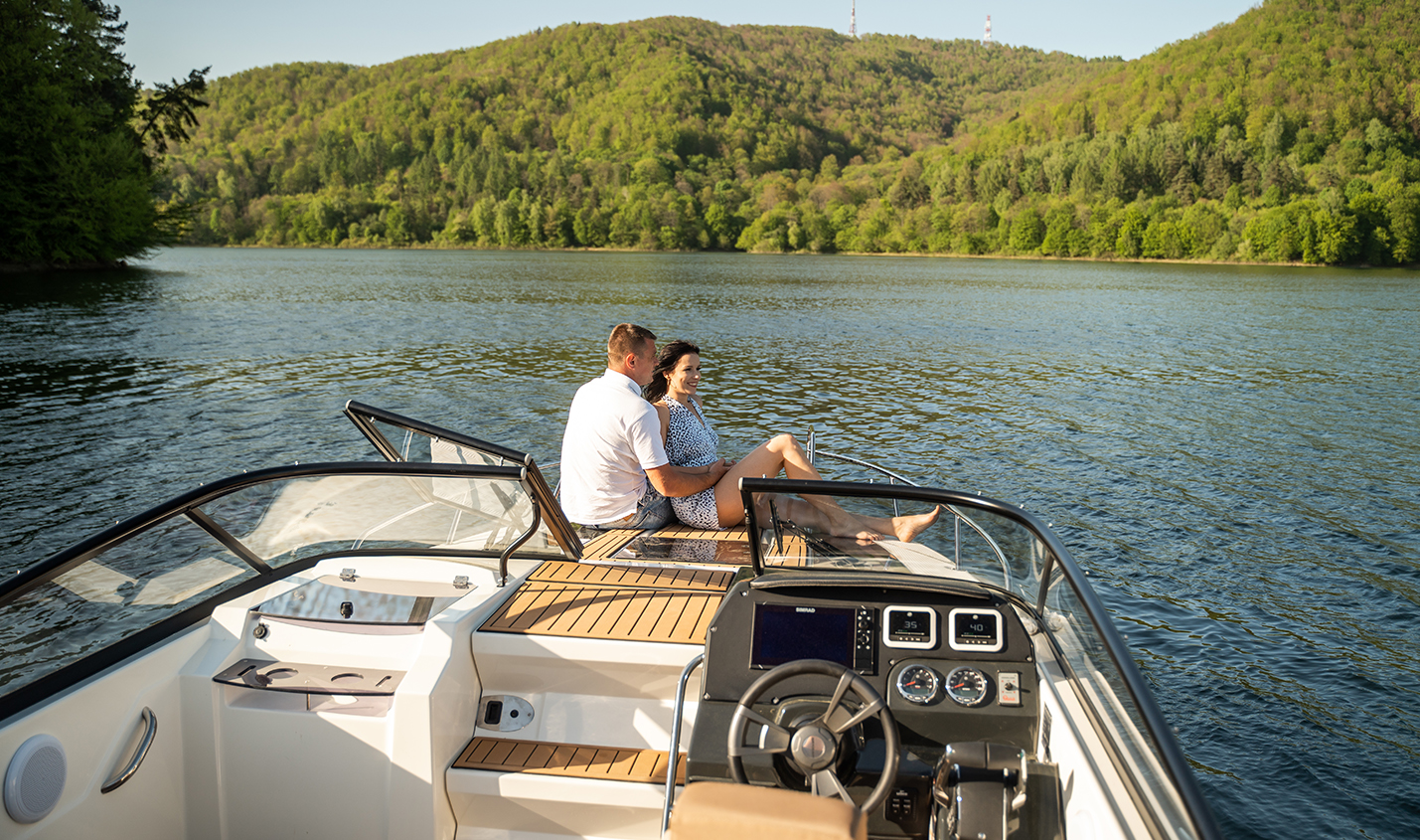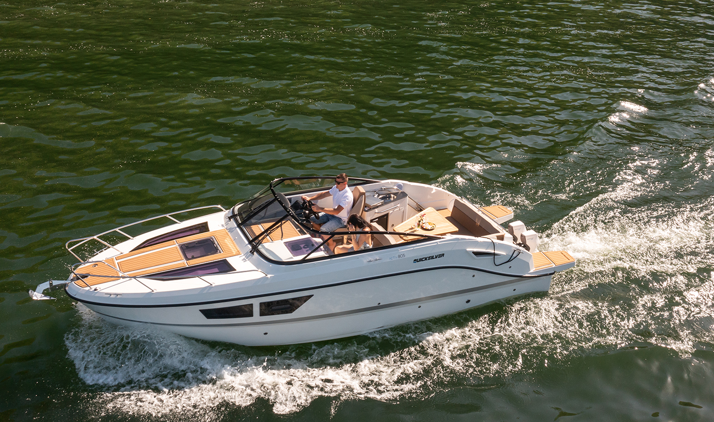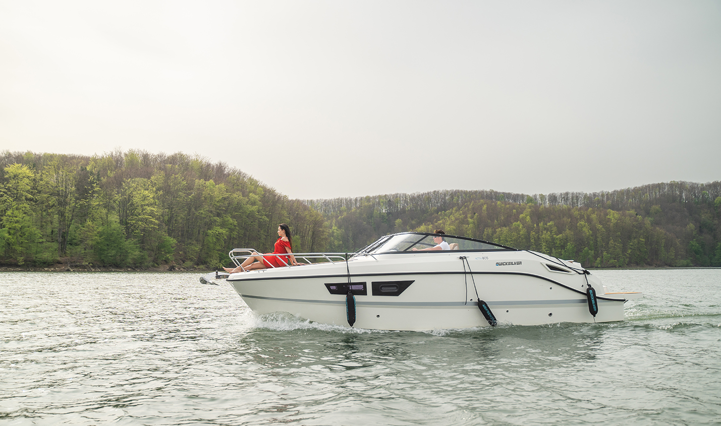 Activ 805 Cruiser to łódź, która zapewnia niezapomniane wrażenia na wodzie dzięki swoim licznym funkcjom. Jej kadłub został zaprojektowany z myślą o bezpiecznym i dynamicznym pływaniu, a z miejsca za konsolą sterowniczą masz doskonałą widoczność i dostępność. To sprawia, że łódź jest bezpieczna przy każdej prędkości i w różnych warunkach pogodowych. Łatwy dostęp do rufy oraz szerokie platformy kąpielowe z solidną drabinką umożliwiają bezproblemowe wejście i wyjście z wody.